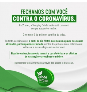 Shopping Cidade Jardim toma medidas de prevenção ao novo coronavírus